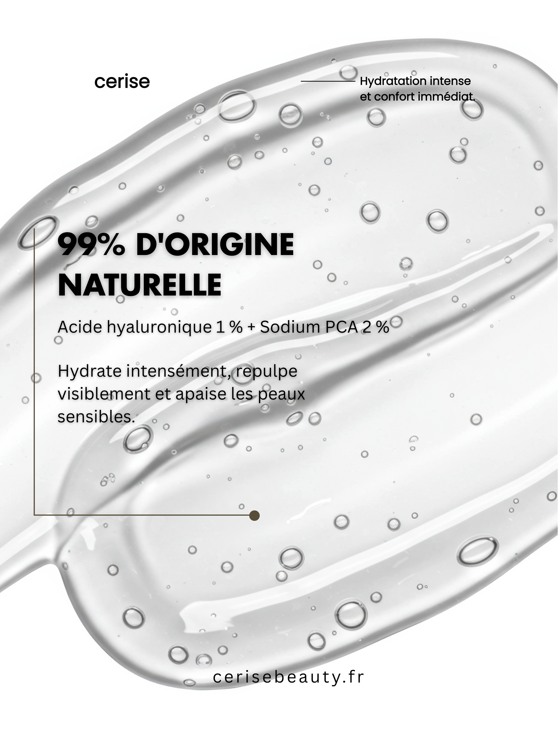 • Soir : nettoyant doux → Gel → Crème si besoin de confort supplémentaire. Tu peux aussi l’utiliser sous tes autres sérums pour apporter une “couche d’eau” sans alourdir.